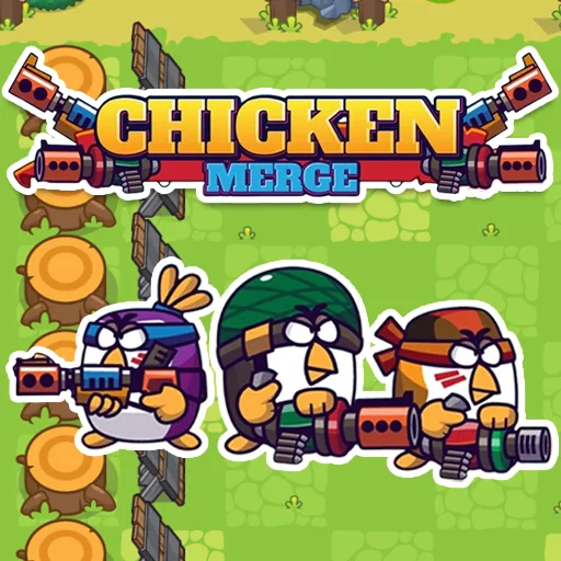 Chicken Merge is a merge puzzle game combined with tower defense elements where players deploy and merge chickens to create stronger units that protect their base from waves of enemies.