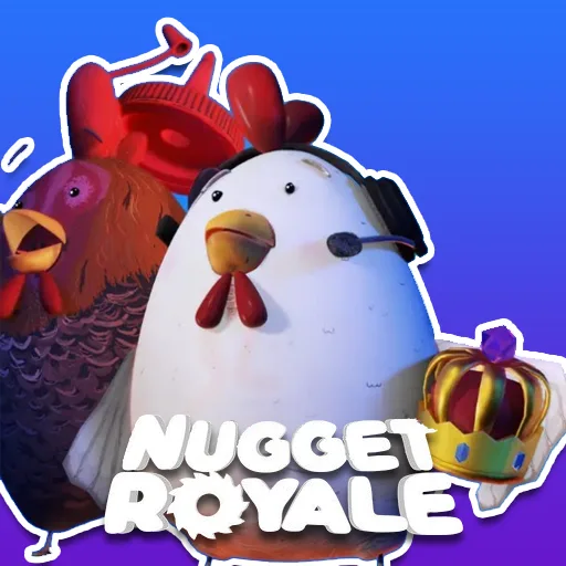 Nugget Royale is a chaotic, chicken-themed battle royale game where 80 players compete as chickens on an unstable disk above a gruesome grinder. The goal is to be the last chicken standing to avoid being turned into a nugget.